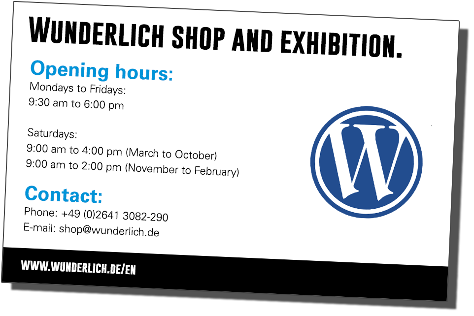 Welcome to the shop in our Wunderlich company headquarters! We look forward to seeing you!