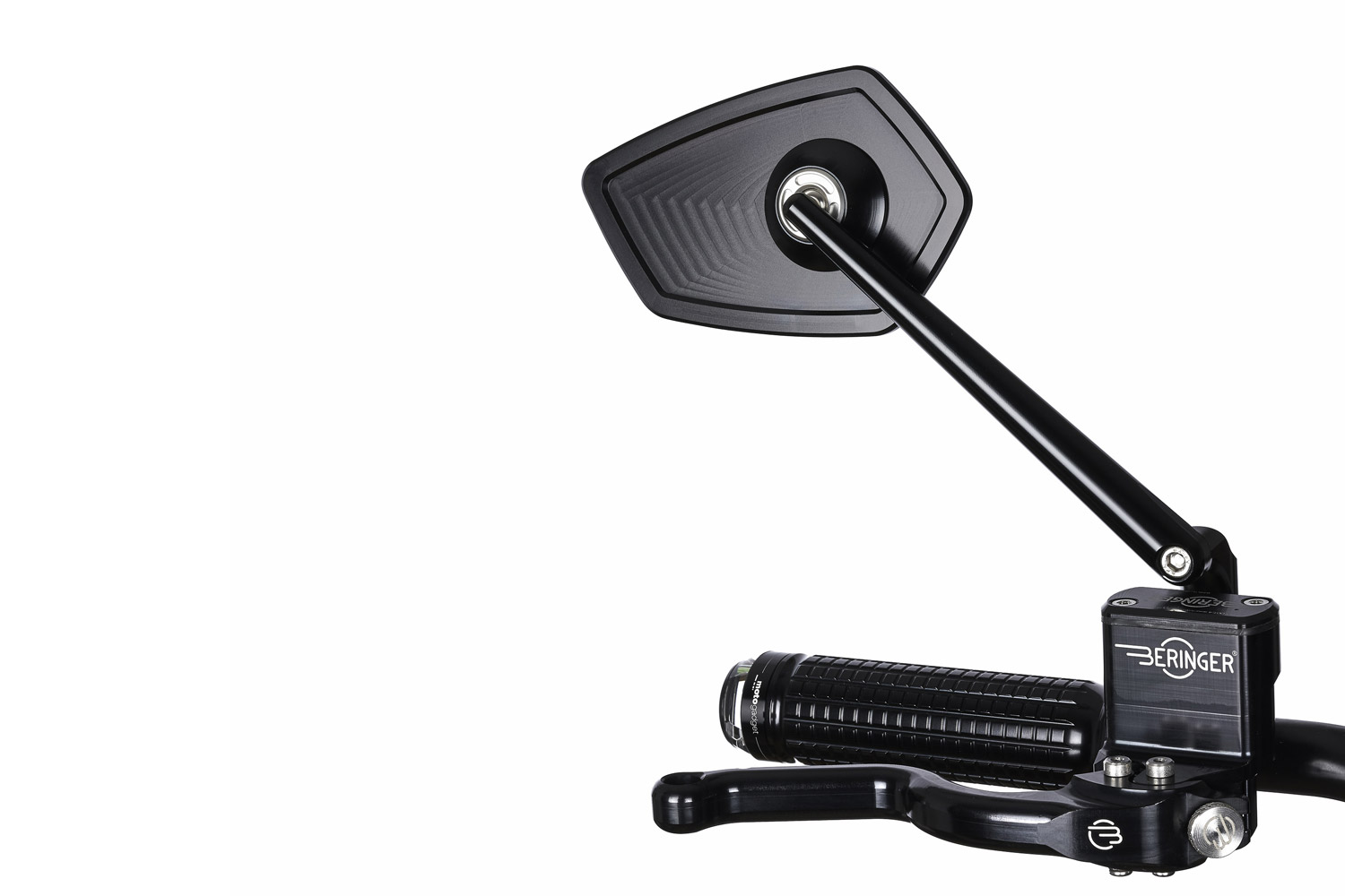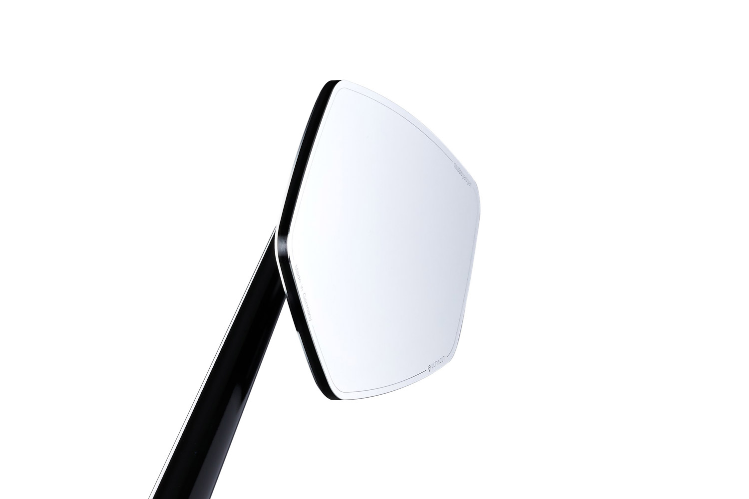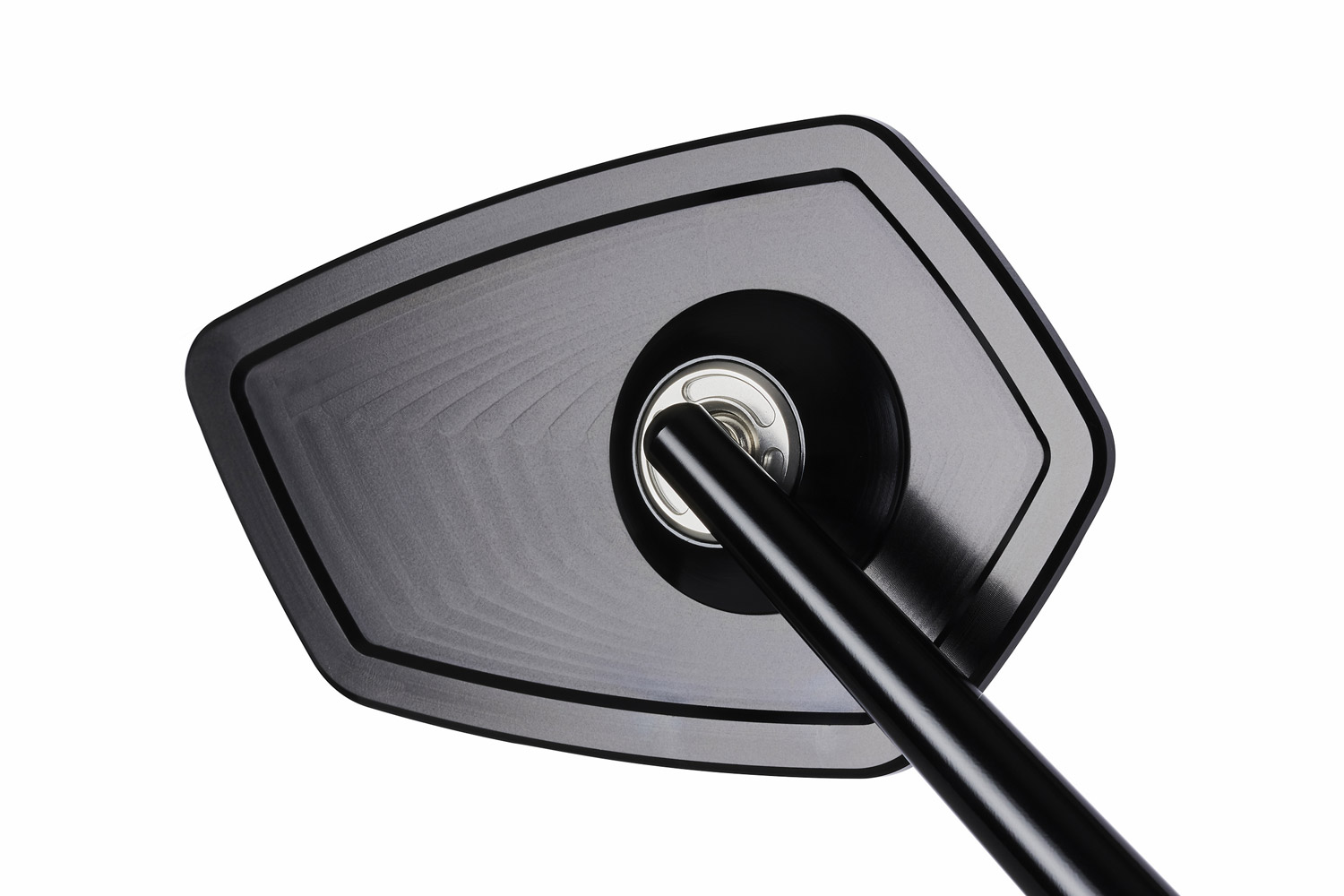 Motogadget now exclusively presents its mo.view glass-free range of mirrors. The special thing about this motorcycle mirror is the patented mirror surface, which is directly integrated into the metal body. The aluminium itself IS the mirror! This makes it possible to achieve a weightless design with no rim or frame and the body of the mirror itself is very thin and light. This make it impossible for glass to break or fall out!