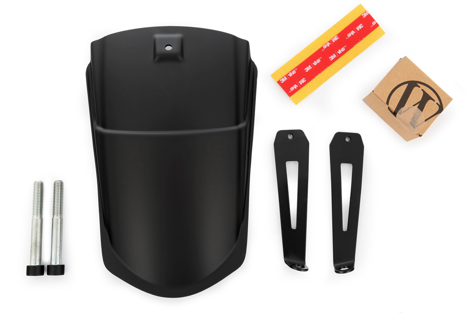 Nuestra cubierta antisalpicaduras sella las aberturas laterales de las estriberas para acompañante y se monta en los puntos de fijación ya disponibles. El guardabarros retiene las salpicaduras y las desvía de forma segura hacia abajo. De esta forma, se reducen con eficacia los efectos molestos de la suciedad y de la humedad y se mejora notablemente la comodidad. El diseño del protector funcional se integra de forma discreta y armoniosa en la línea de vuelo de la moto.