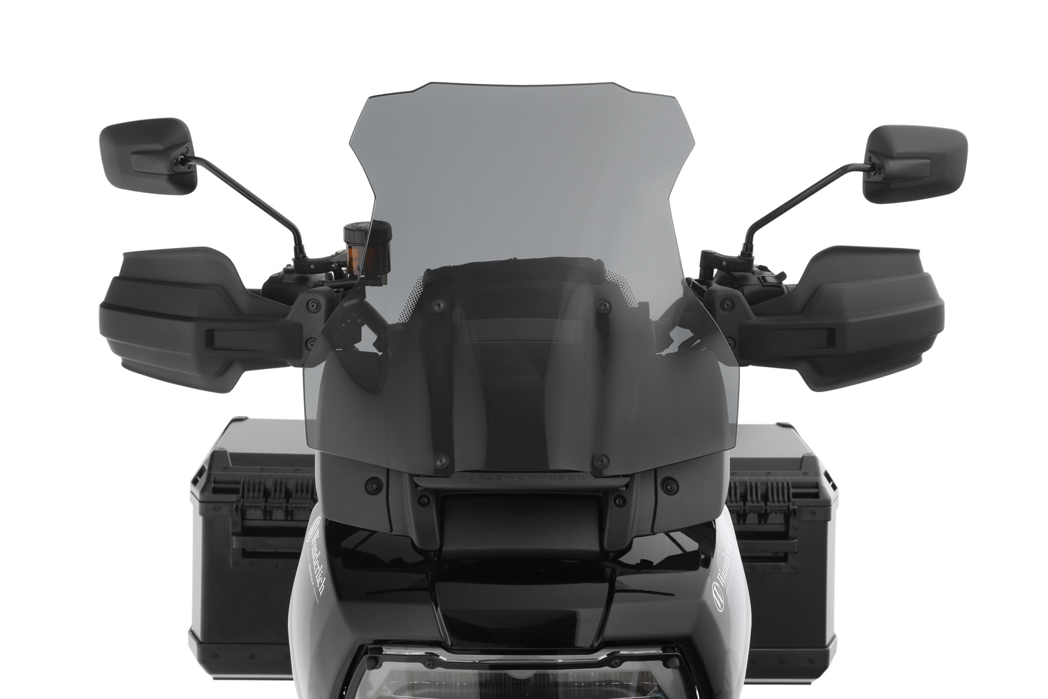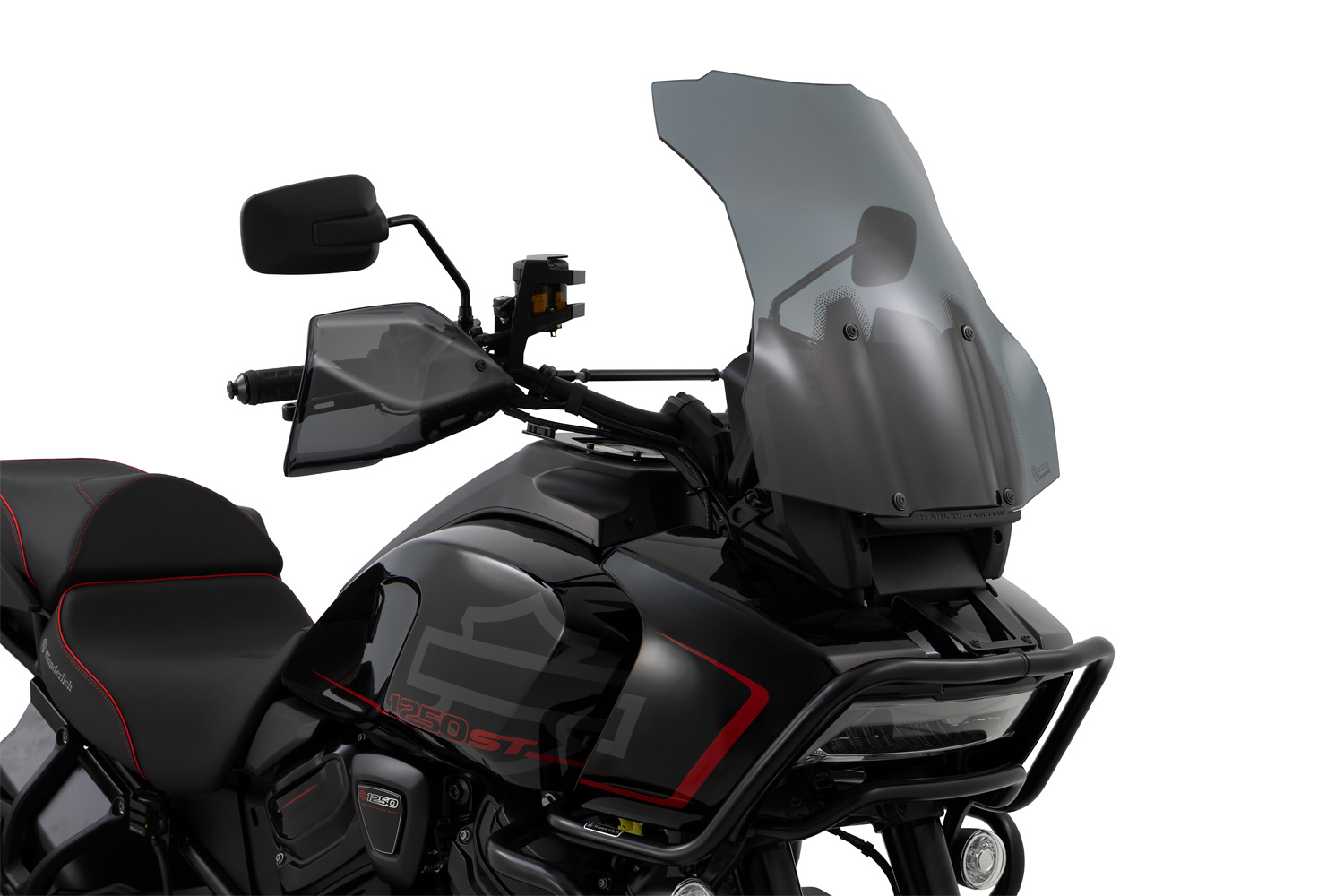 El mecanismo de ajuste original sigue siendo completamente funcional. Para reforzar el sistema de montaje original –que muchos motoristas consideran inestable– recomendamos nuestro refuerzo para pantalla (#90156-002 para Pan America 1250, 1250 Special, CVO o #90162-002 para ST).