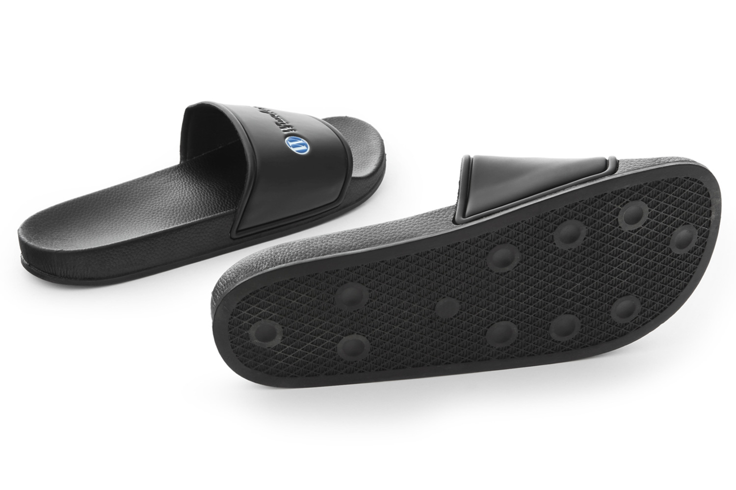 - Chanclas ligeras de gran calidad en negro con el logotipo de la marca Wunderlich