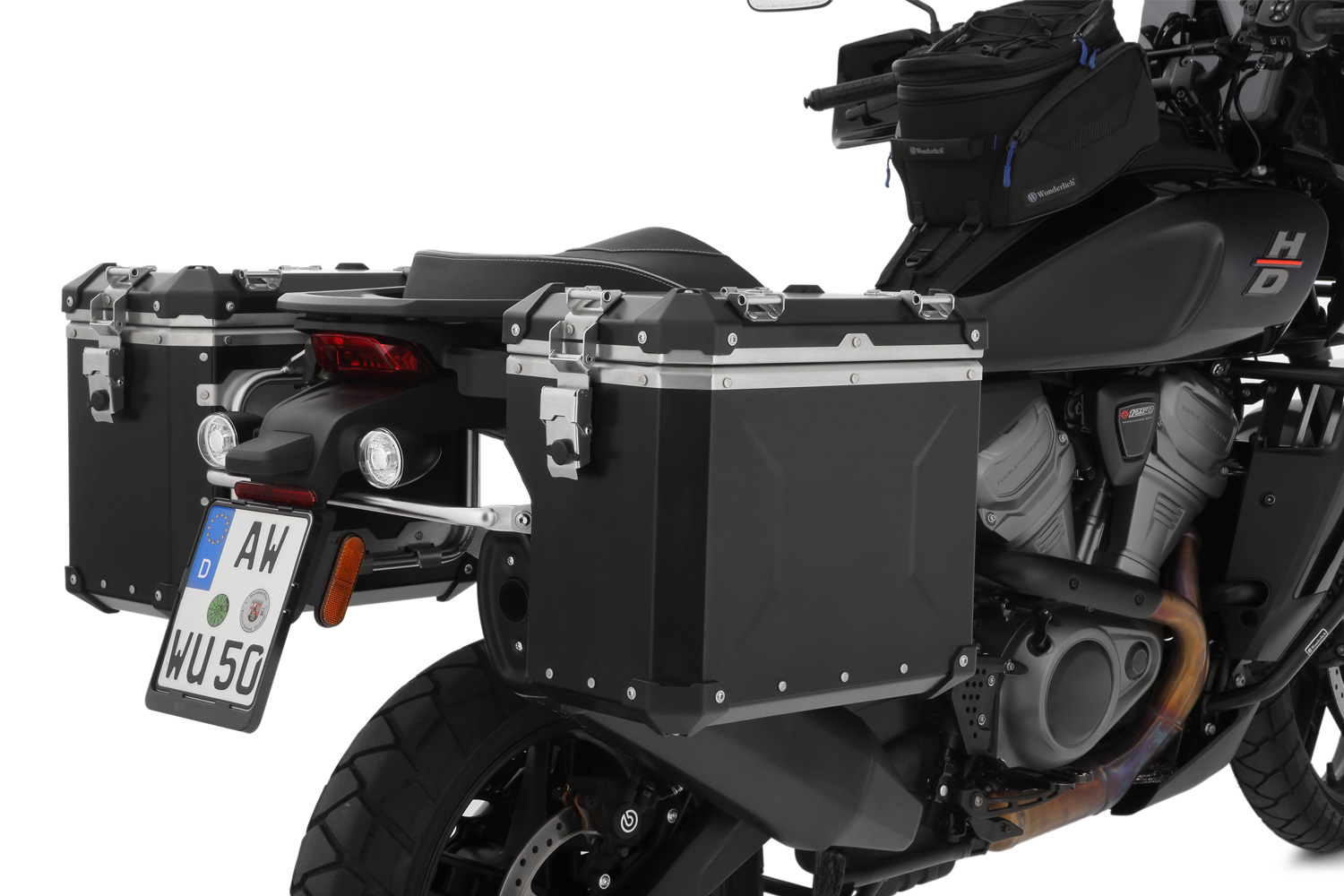 Ces coffres en aluminium, robustes, légers et fonctionnels (coffres latéraux et topcase) pour les modèles GS, procurent à tout motard un confort particulier en voyage. De par leur système d'étanchéité spécial, ils sont absolument étanches à l'eau. La durabilité est garantie par la tôle d'aluminium de 1,5 mm, à moulures de stabilisation (au poids optimisé, mais cependant robuste) utilisée, par les raccords en acier inoxydable, par la protection intégrale de toutes parts échangeable ainsi que par les capuchons de protection des serrures. Grâce aux œillets d’arrimage pratiques sur le couvercle, les bagage se fixent facilement et en sécurité au moyen de sangles.