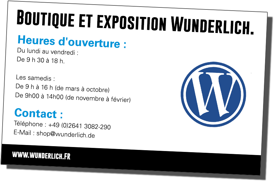 Notre magasin au siège de l'entreprise est ouvert pour vous et nous nous réjouissons de votre visite ! Venez découvrir le formidable univers de la marque Wunderlich et les dernières nouveautés de notre vaste gamme de produits.
