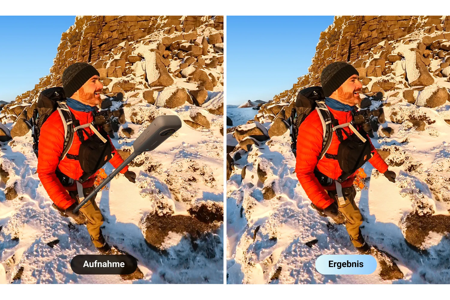 - Rimosso automaticamente dalle riprese a 360° per prospettive incredibili e angolazioni impossibili