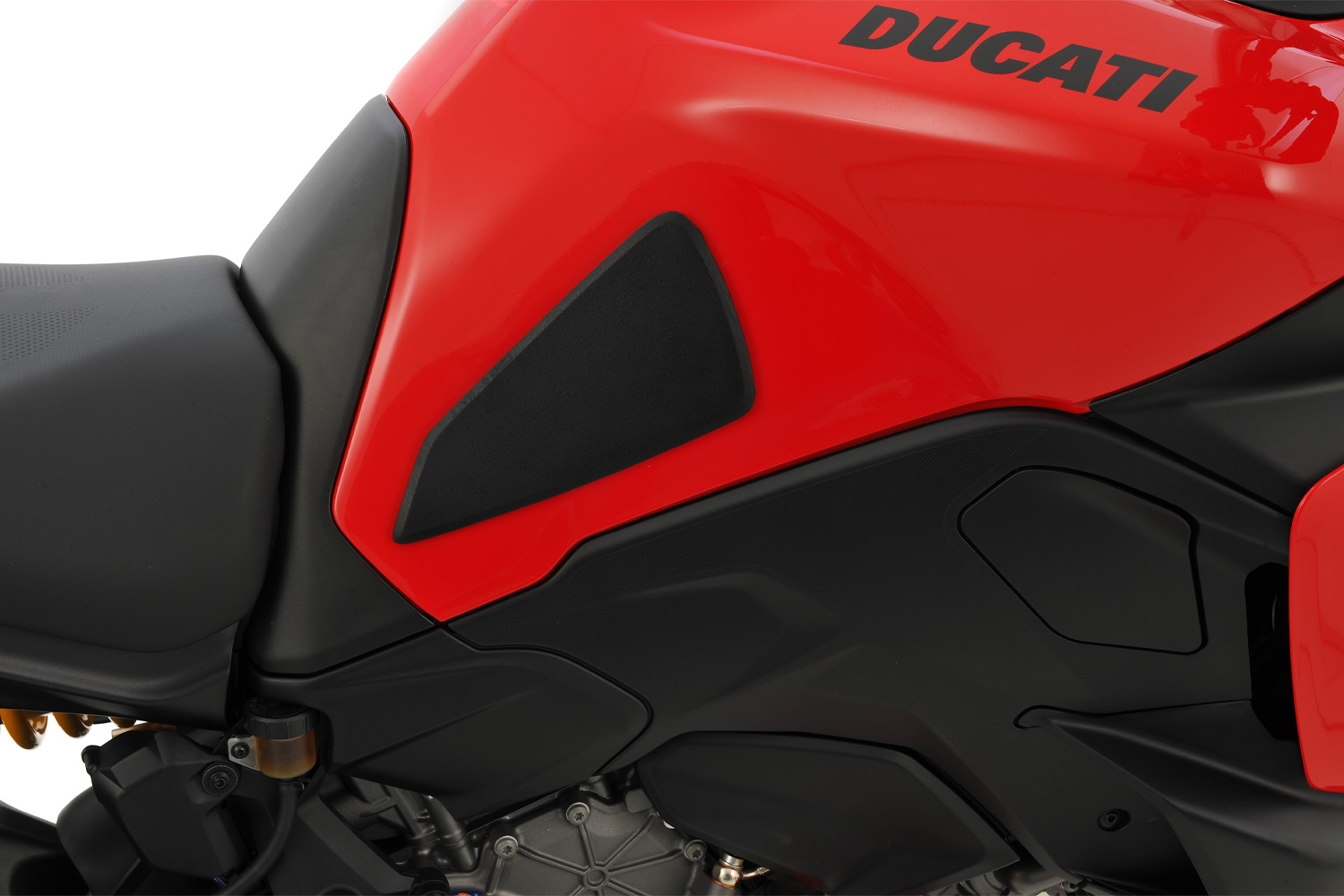 Il set di tre serbatoi per serbatoio è progettato per adattarsi al design della Ducati Multistrada V4. Le protezioni proteggono efficacemente da graffi, danni e abrasioni in tutti i punti di contatto. Le protezioni migliorano la chiusura del ginocchio e forniscono un contatto più diretto con la moto attraverso una maggiore adesione. Ciò aumenta notevolmente l'esperienza di guida e il piacere di guida. Il materiale è costituito da plastica nera di alta qualità e antiscivolo, è antiurto e leggermente granuloso. I pad sono autoadesivi.