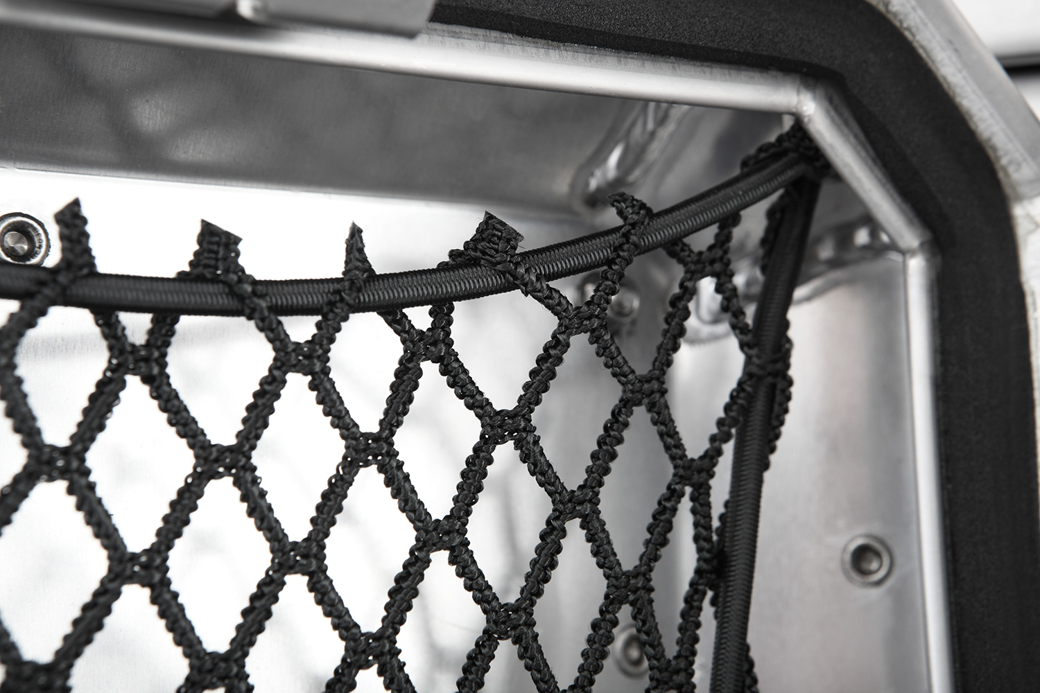 Dank der zusätzlichen Verzurrösen auf dem Deckel können weitere Gepäckstücke sicher aufgeschnallt werden. Die Kofferdeckel sind innen serienmäßig mit praktischen Gepäcknetzen ausgestattet, für alles, was unterwegs unmittelbar griffbereit sein soll: Regenzeug, Werkzeug oder die Verbandstasche.