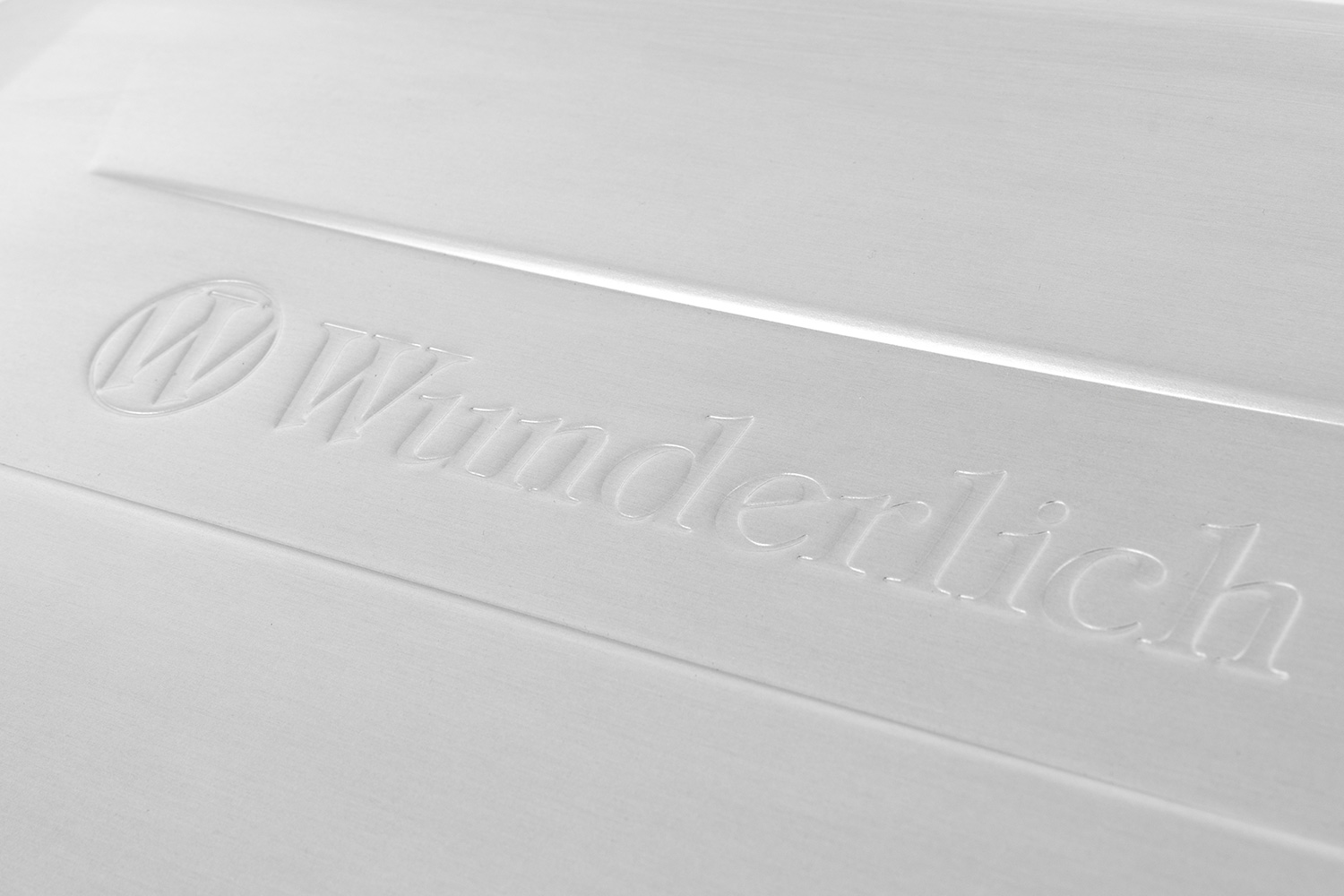 Der Deckel ist mit einem hochwertig geprägtem Wunderlich Markenlogo versehen.