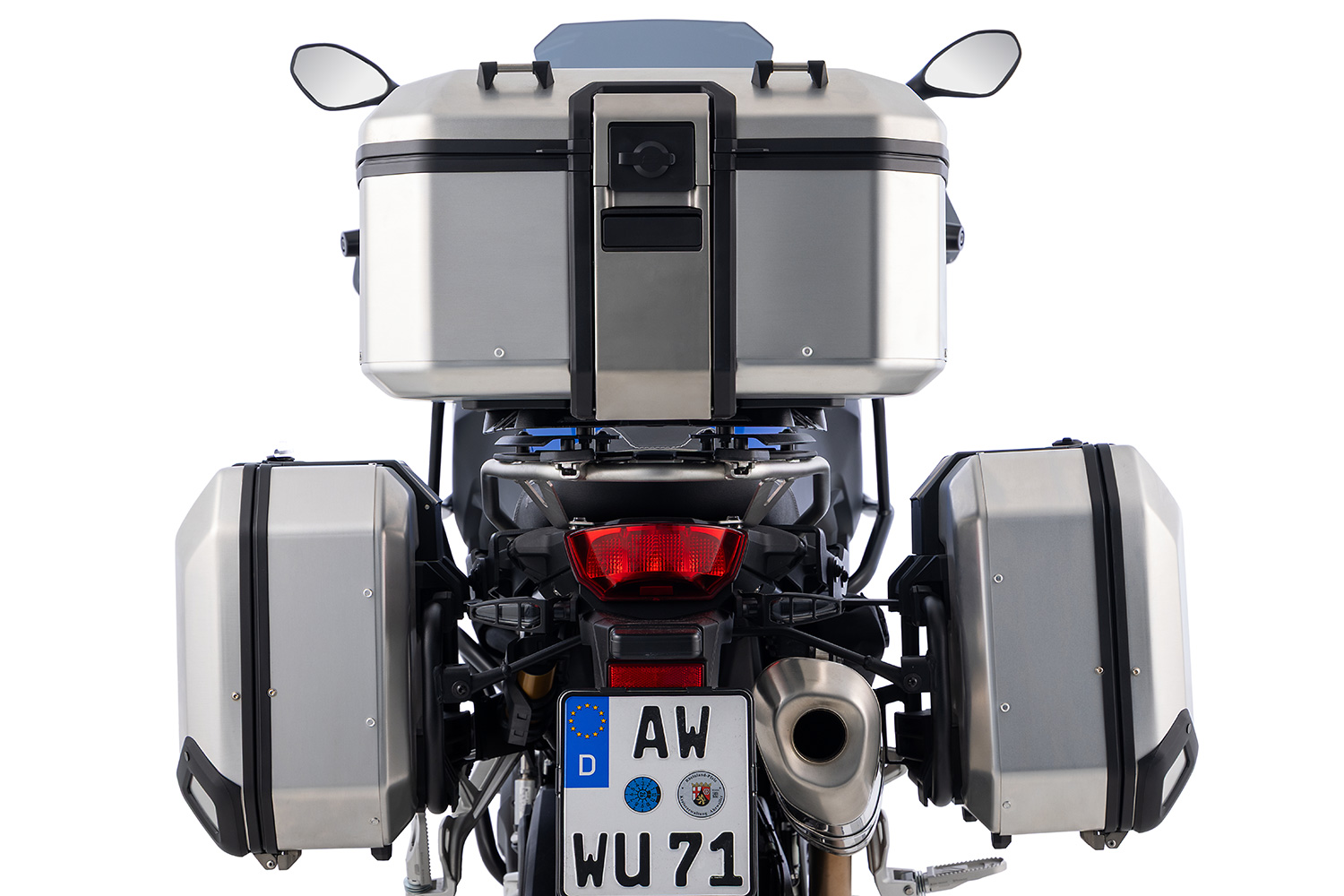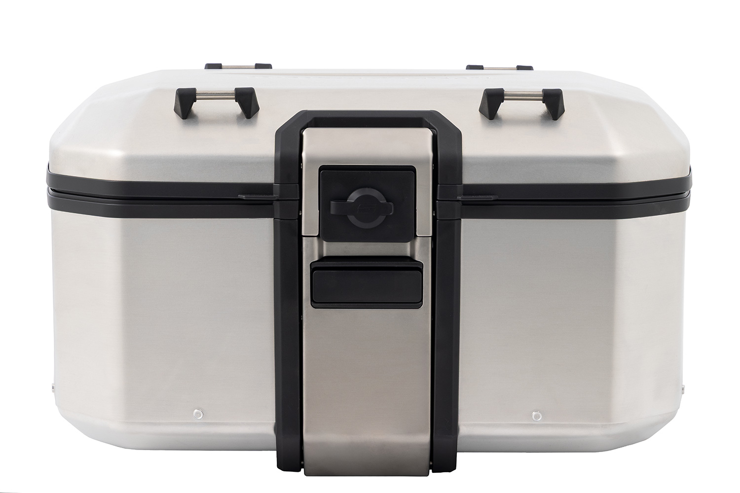 Das Anbringen am Träger ist unkompliziert. Der Schließmechanismus aus Edelstahl verfügt über einen integrierten, einklappbaren Tragegriff, der es ermöglicht, das Topcase in wenigen Sekunden zu öffnen, zu schließen, zu montieren oder demontieren. Das Integraldesign gibt sich zeitgemäß mit hohem Wiedererkennungswert.